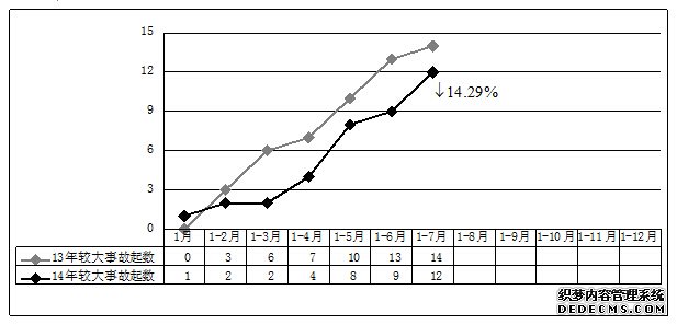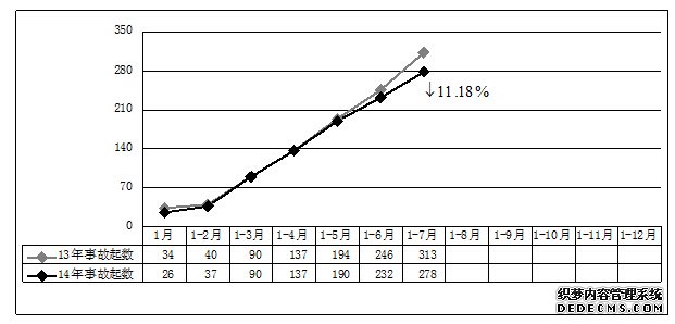 图2 2014年1-7月事故起数与2013年同期对比