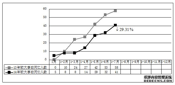 图6 2014年1-7月较大事故死亡人数与2013年同期对比