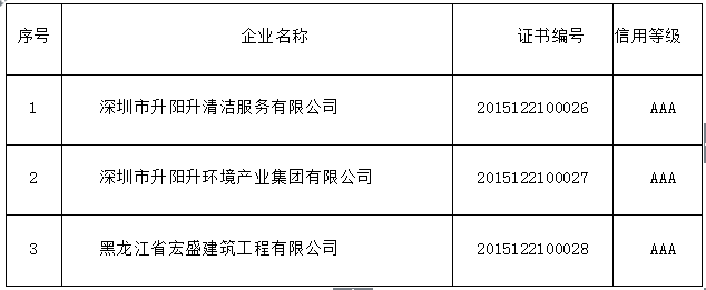根据《国务院关于印发社会信用体系建设规划纲要(2014—2020年)的通知》(国发〔2014〕21号)的文件精神,中国中小商业企业协会信用担保委员会与商务部国际贸易经济合作研究院信用评级与认证中心联合开展了2015年度国际商业信用等级的申报评价工作。本着自愿、诚信、公正、科学、严格的原则,经企业自愿申报、协会初审、商务部国际贸易经济合作研究院信用评级与认证中心专家评审组终审,确定了3家中小企业信用评价等级。