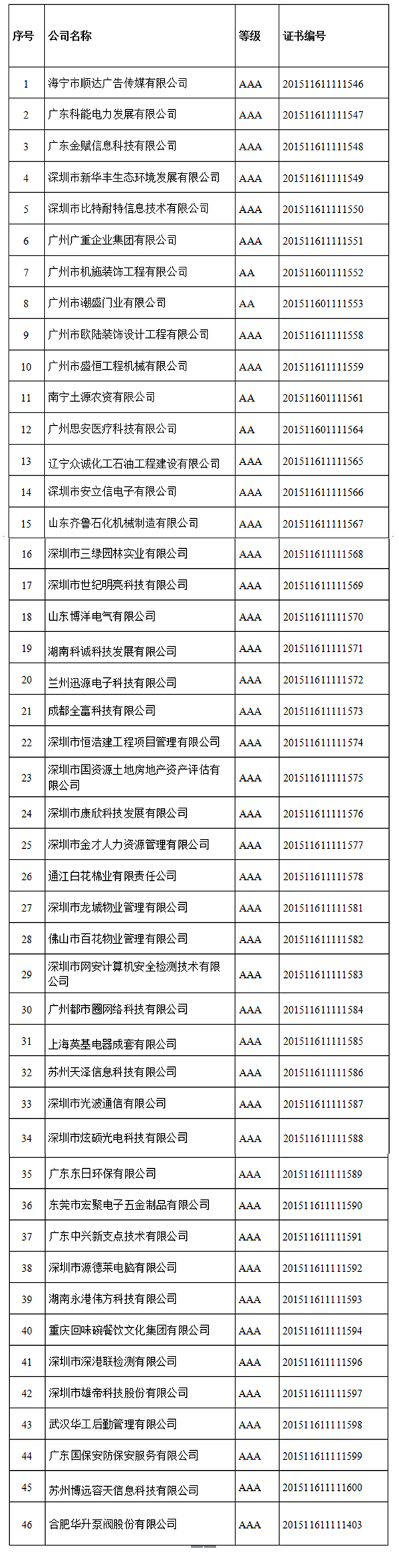 2016年9月第一批中国中小企业信用企业国际等级评价结果公示