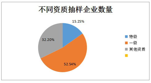 在所抽取的296家企业中,一级资质占比最多,共计155家,特级资质企业45家。如图3所示为抽样企业的资质比例分布。