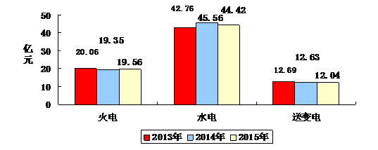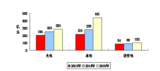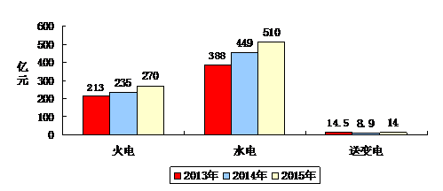 2015年,行业完成总营业收入3148亿元,同比降低1.84%。水电施工企业2015年总营业收入1611亿元,同比持平;火电施工企业2015年总营业收入1034亿元,同比增长4.87%;送变电施工企业2015年总营业收入503亿元,同比增长1.62%。