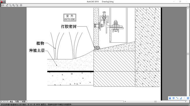 (4)外幕墙为暗散水或无散水采用绿化连接,下端无收口、无封口问题可采用如下作法。