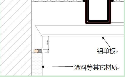 图2 外墙铝单板与外墙涂料(不同界面)阴角部位采用铝单板过度的方法节点图