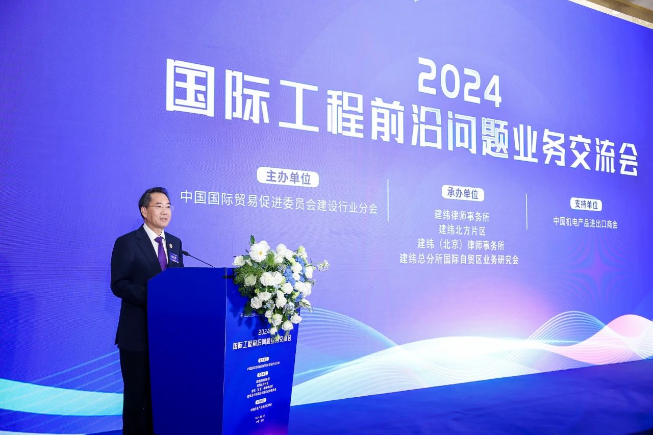本会讯 为了帮助中国企业更好地应对国际工程前沿问题,由中国国际贸易促进委员会建设行业分会主办,建纬律师事务所承办,中国机电产品进出口商会支持的“国际工程前沿问题业务交流会”于2024年9月19日上午在北京市朝阳区国际财源中心召开。中国建设行业贸促会会长李礼平出席交流会并致辞。来自对外投资合作企业的高管和相关机构专业人员120余人出席会议,共同探讨国际工程前沿问题,旨在为中国企业“走出去”提供专业的指导和帮助。