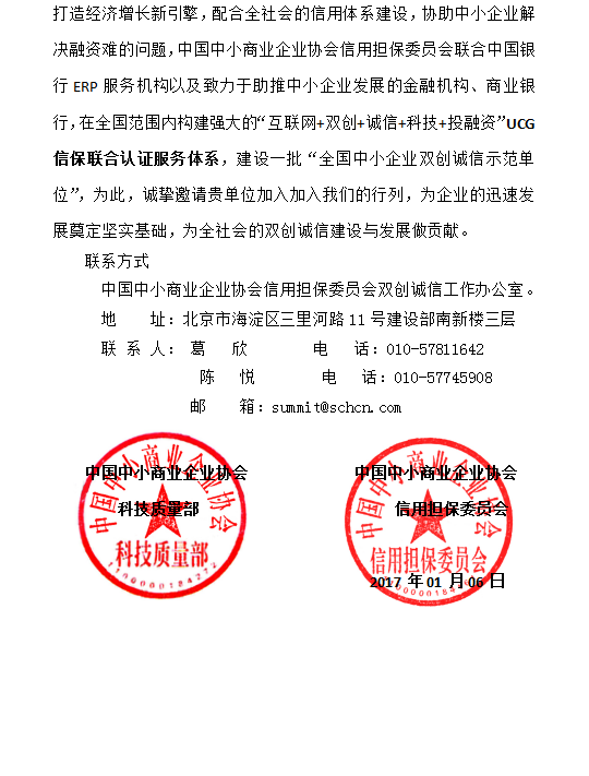 关于开展“全国中小企业双创诚信示范单位”的通知