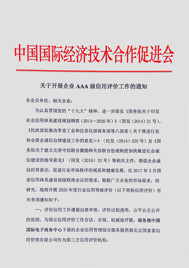关于开展企业AAA级信用评价工作的通知