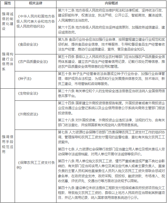 (一)现行法律和行政法规设列信用条款的情况