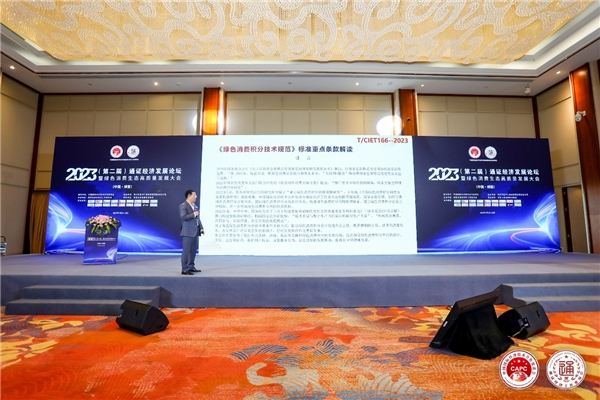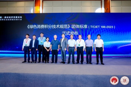 本届论坛的一大亮点是发布了“绿色消费积分技术规范”团体标准,标准编号为T/CIET 166—2023。这一标准的发布得到了与会各方的高度关注和认可,它将成为推动通证经济与绿色消费有机结合的重要纽带,为绿色消费积分企业的发展奠定坚实的标准基础。