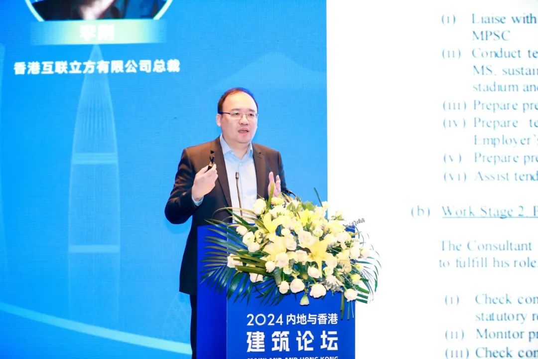 李喆在致辞中表示期待与会嘉宾能够深入交流,互学互鉴,大胆探索,为推动内地与香港建筑业深度融合和高质量发展,推进粤港澳大湾区建设,促进两地业界携手“走出去”,积极建言献策,贡献智慧和力量。