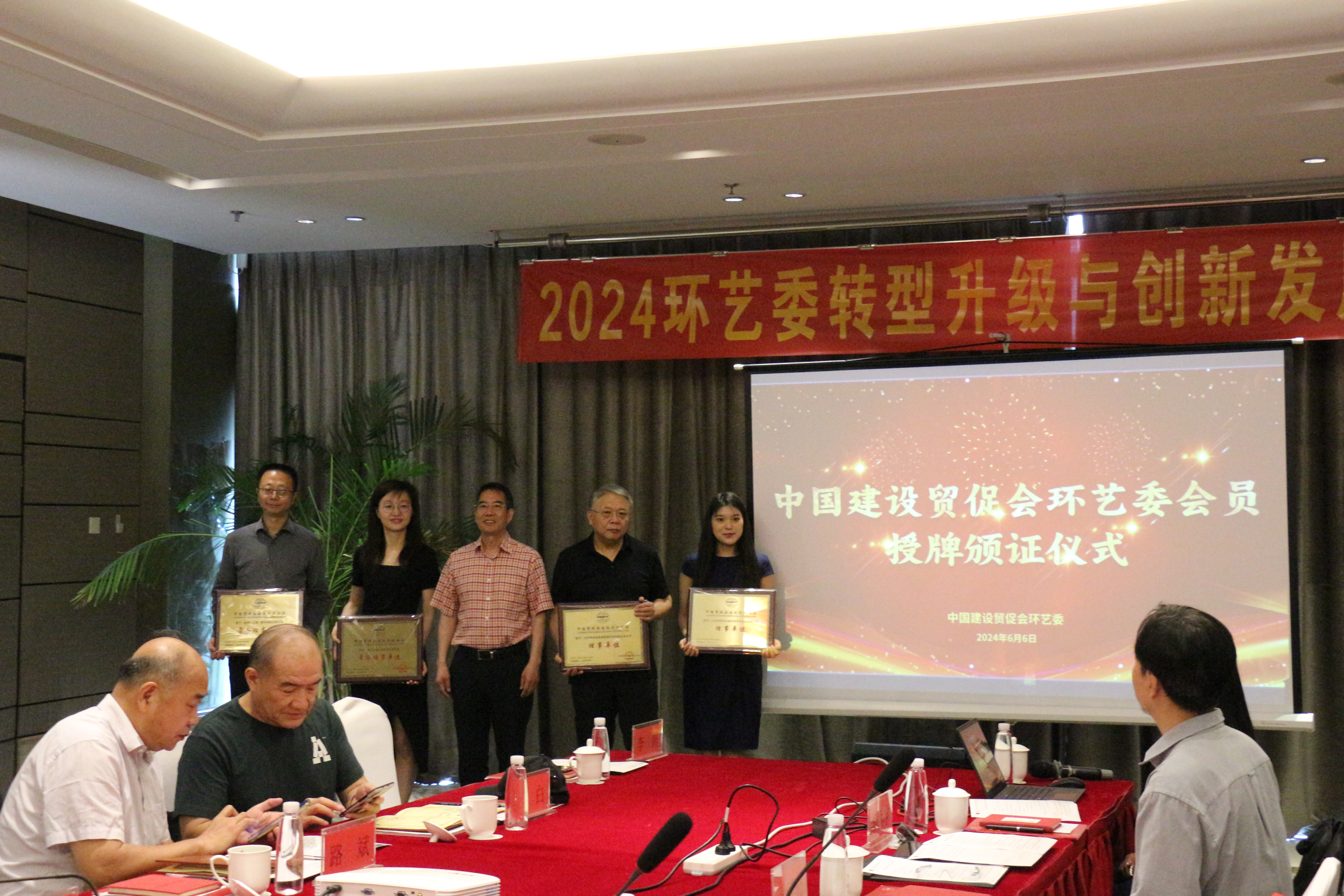 会议同期,李礼平会长代表中国建设行业贸促会颁发了2022~2023环艺委推荐的部分智库专家证书以及2024年环艺委到会的企业会员牌匾及证书。