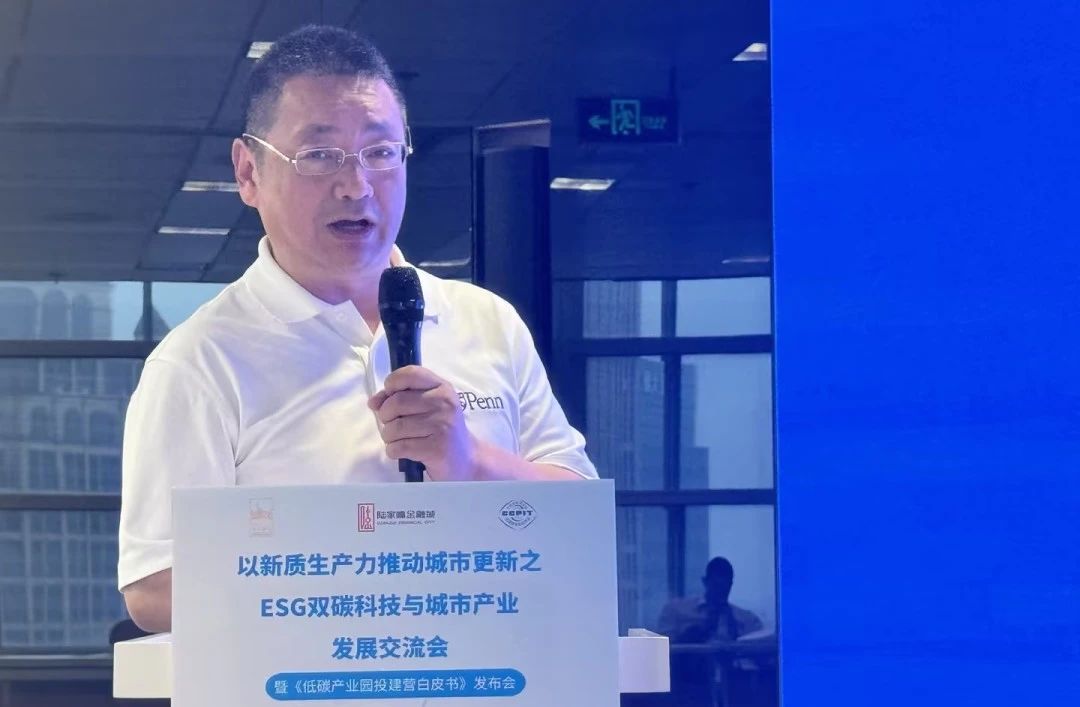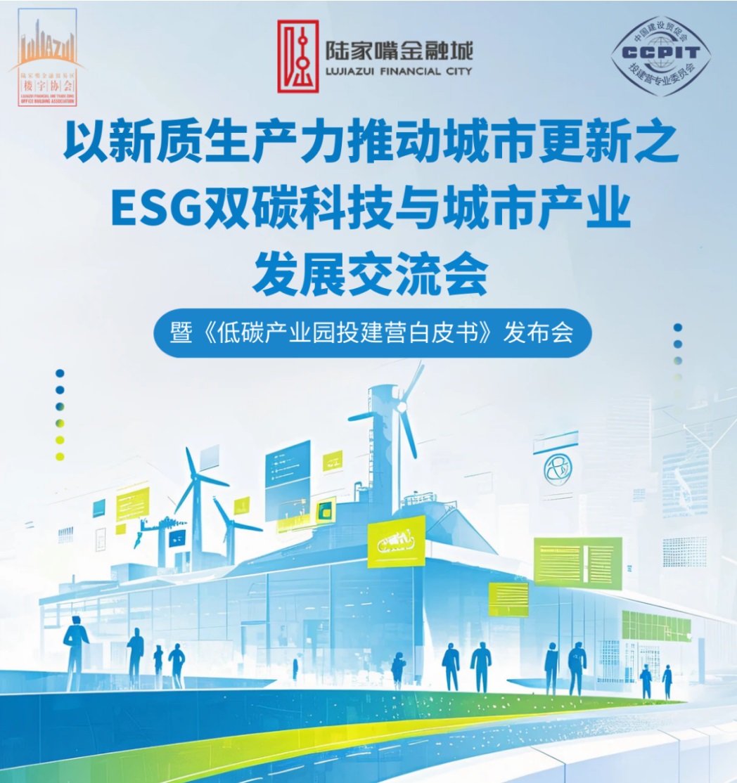 2024年5月底,在中国(上海)自由贸易试验区管理委员会陆家嘴管理局的大力支持下,由中国国际贸易促进委员会建设行业分会投建营专业委员会、中法碳中和上海联合创新中心、上海市浦东新区陆家嘴金融贸易区楼宇协会、上海产业合作促进中心碳中和智能研究院、中建八局城市投资运营管理有限公司、上海龙舟投资管理有限公司、广济创投等企业与组织共同举办的ESG双碳科技与城市产业发展交流会暨《低碳产业园投建营白皮书》发布会,在上海浦东新区金茂大厦30层的陆家嘴会客厅顺利举行。
