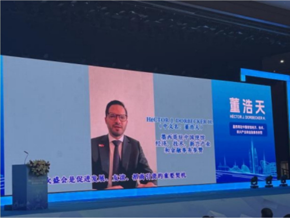 在 “建设产业国际合作交流基地(石材碳酸钙)”授牌仪式上,墨西哥驻中国使馆经济、技术、新兴产业和金融事务参赞HÉCTORJ.DORBECKER H.(中文名字:董浩天),中国贸促会建设行业分会驻墨西哥首席代表、全墨西哥华人华侨总会会长、墨西哥ABM建材城集团主席耶天慧先后发表视频贺词,并表示期待未来能与贺州市在相关领域展开深入合作。