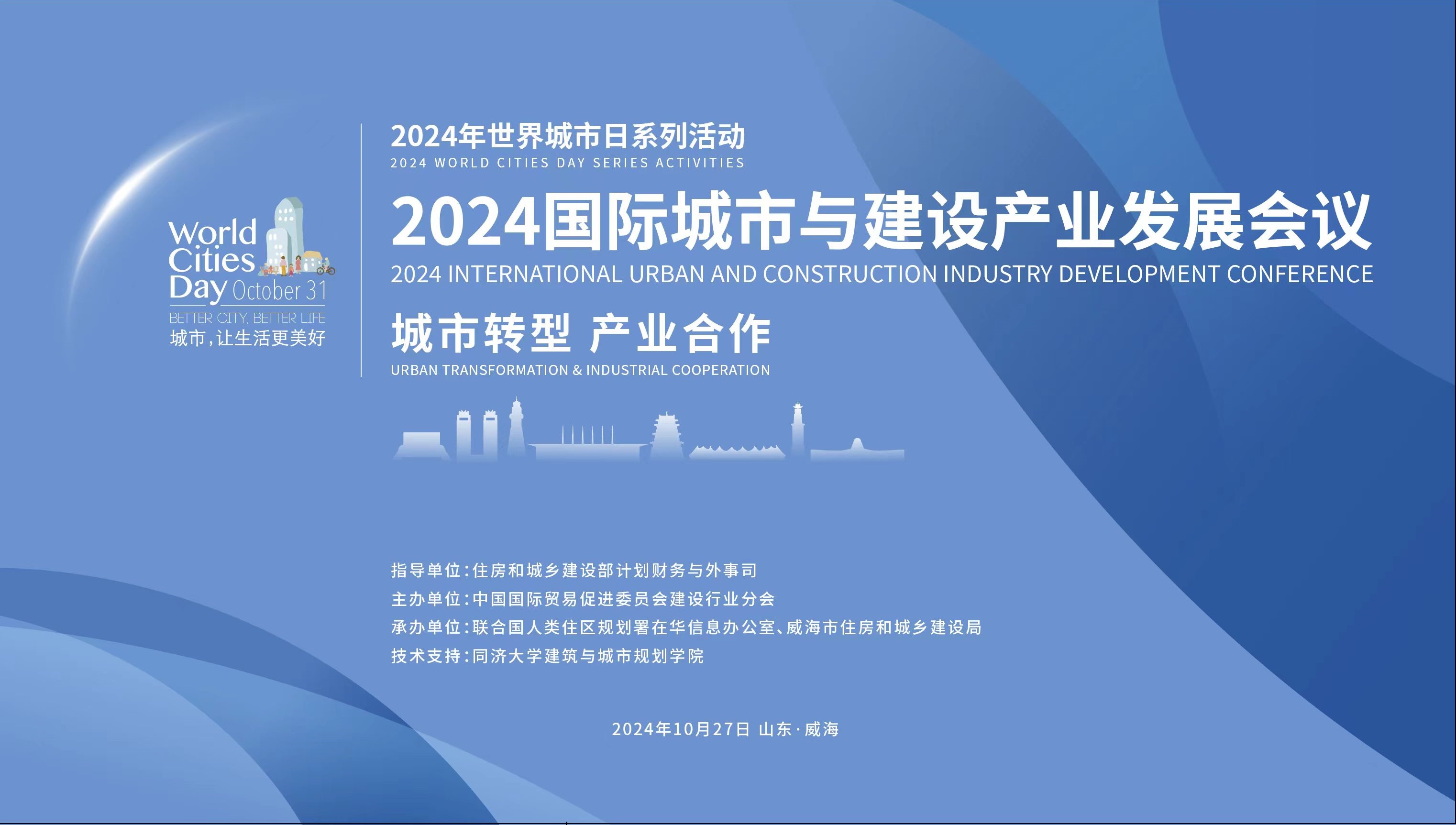 “2024国际城市与建设产业发展会议”作为今年世界城市日中国主场系列活动之一,在住建部计划财务与外事司指导下,由中国建设行业贸促会主办,联合国人居署在华信息办公室、威海市住房和城乡建设局承办,同济大学建筑与城市规划学院作技术支持。会议主题为“城市转型·产业合作”,这与世界城市日总主题“城市,让生活更美好”和今年的年度主题“共建人民城市 共享美好生活”是一脉相承的,也呼应了住建部关于加快城市更新、老旧小区改造、建筑业转型升级、加强住宅领域国际交流合作、推动住建行业高质量发展等方面的工作部署。