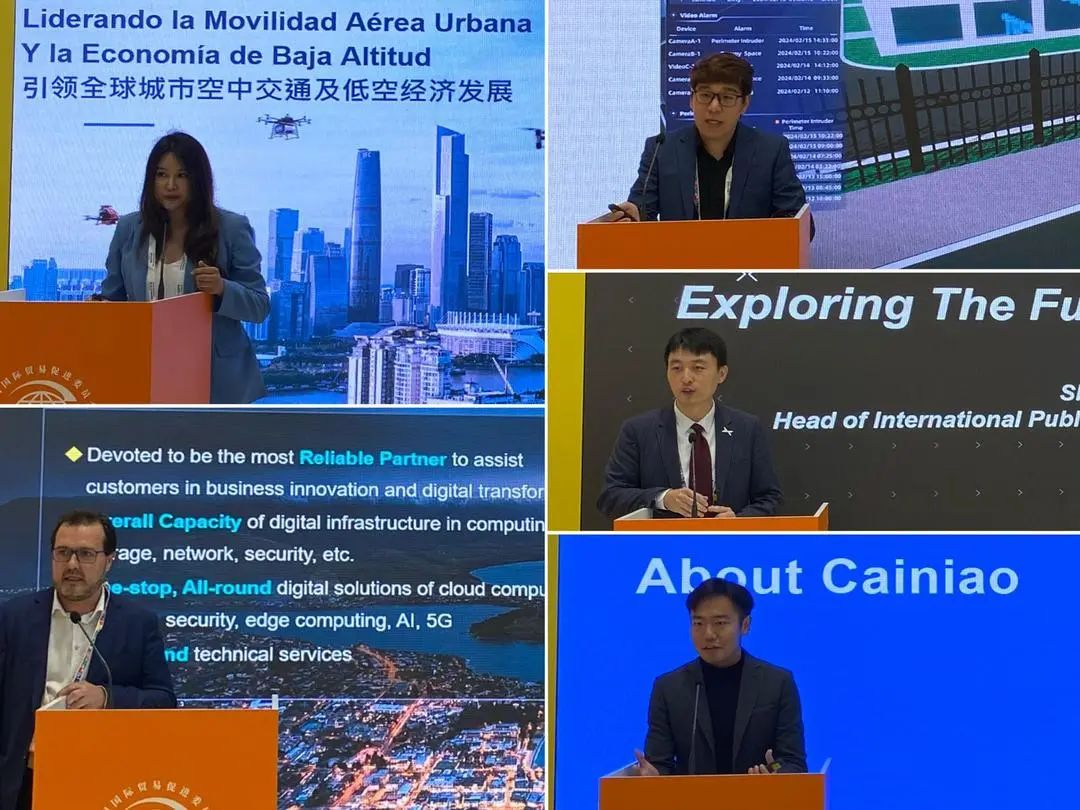 致辞结束后,进入专业论坛环节。大会第一天的论坛主题为“未来交通”。首先,亿航智能欧洲及拉丁美洲首席运营官向静上台,介绍公司及其业务,并担任后续专业论坛的主持人。随后,新华三、菜鸟物流科技、中国移动国际、小鹏汽车等中国企业代表依次发言,介绍各自公司业务,并分享他们在智慧城市与未来交通等领域的创新成果。