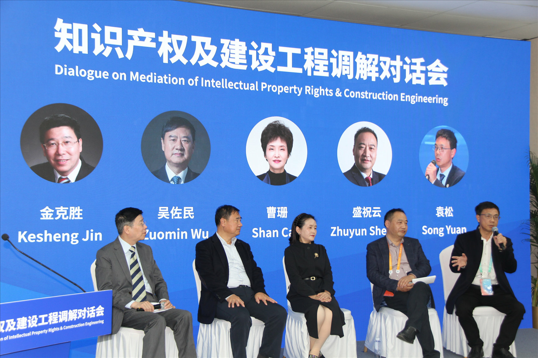 在建设工程调解对话环节,来自中国知识产权法学研究会副会长金克胜、北京市建设工程招标投标和造价管理协会会长吴佐民、北京德恒律师事务所高级合伙人曹珊、武汉市政协委员、复坤集团(武汉)企业管理有限公司董事长盛祝云、雄安新区造价协会副秘书长、大为国际工程咨询有限公司董事长袁松五位专家分别从建设工程调解领域开展对话交流。