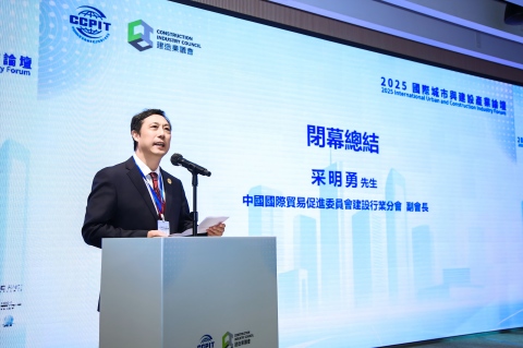 论坛尾声,中国国际贸易促进委员会建设行业分会副会长采明勇先生作闭幕总结。他表示,本次“2025国际城市建设与产业论坛”围绕智慧城市、湾区标准等前沿议题实现了深度思想碰撞,见证了智能建造如何深刻重塑未来城市建设的形态与建筑业格局,开启城市可持续发展与产业创新协同的多元路径;并强调中国建设行业贸促会将持续构建开放平台、推动务实合作、倡导包容发展,同时希望参会者将论坛共识转化为创新动力,期待未来再度相聚共促国际城市建设与产业发展。